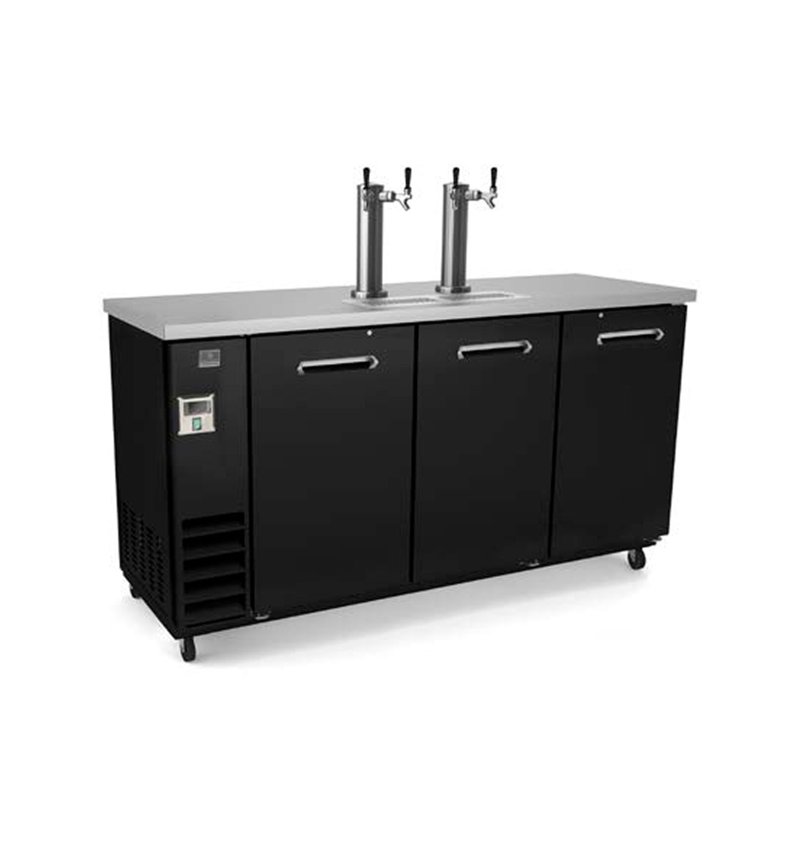 Back Bar Beer Dispenser Black Powder Coated Exterior 3 Solid Door and 2 Beer Columns Stainless Steel interior Self Closing Door with 90 Degree Stay-Open Feature