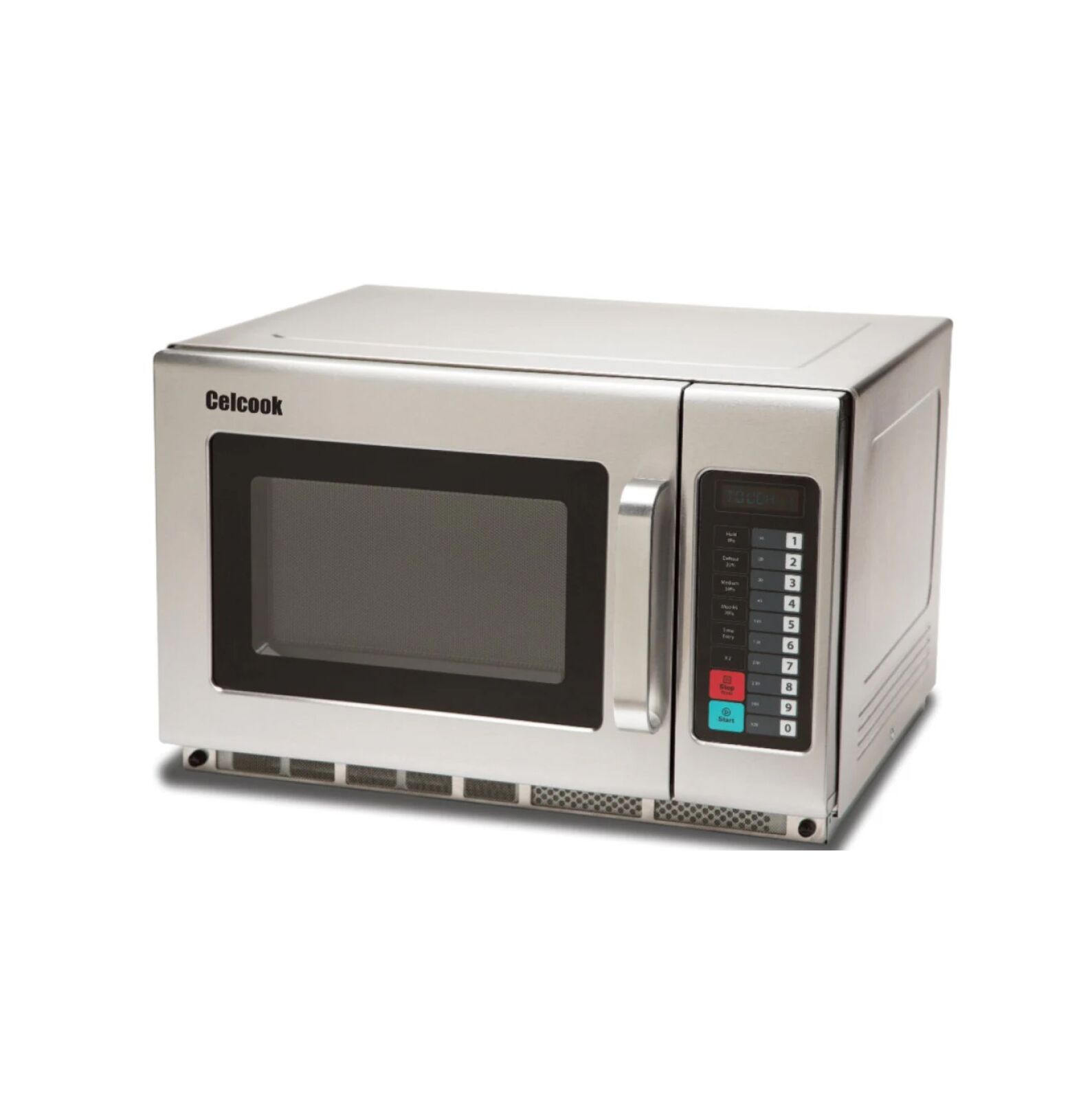 The commercial microwave oven will be equipped with 10 touchpad programmable control panel with the ability to program 100 menu items. The oven will have a maximum cooking time of 60 minutes with 5 power levels, 3 stage cooking, and a time entry option. Output wattage shall be 1800 watts with top and bottom rotating antenna feed distribution for a uniform heating pattern. The oven will have stainless steel exterior and the interior cavity with the 34 liters (1.2 cu ft) cavity able to accommodate a 356mm (14”) plate. Ovens will be stackable and include a safety bracket.Removable front filter to protect and cool oven components. This ISM apparatus meets all requirements of the Canadian Interference-Causing Equipment Regulations. This ISM device complies with Canadian ICES-001.
