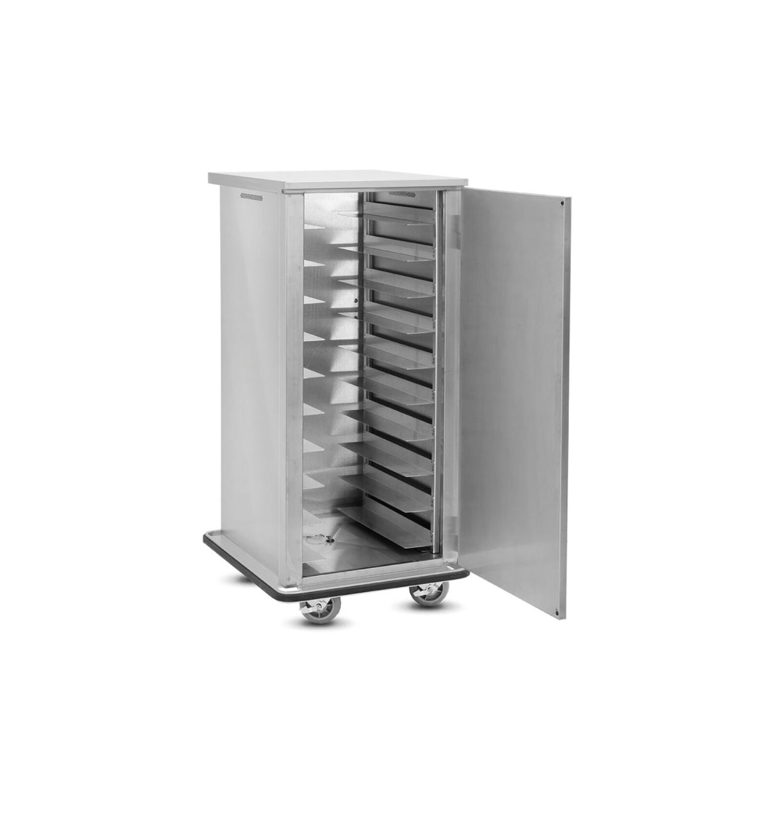 Rugged Patient Tray Transport – For 15″ x 20″, 14″ x 18″, or 18″ x 26″ Patient Trays. Non-heated, non-insulated, rugged patient tray transports in sanitary stainless steel. Easy to maintain and non-electrical! FWE’s heavy-duty patient tray cabinets are fully enclosed and designed for fast tray access. Built for mobility, FWE’s unibody construction keeps the cabinet balanced and stable during transport. Serve hot and cold foods together using pellet systems, insulated, or disposable containers. Complete meals can be prepared ahead of time, then easily transported to serving location.Our internal frame construction is designed to endure the most rigorous operations and environments, eliminating cabinet torquing during transport, assuring FWE cabinets last longer than any other – period! Durable stainless steel takes the abuse of transport applications and allows for sanitary maintenance. Casters are mounted to reinforcement plates for added durability and take the impact over thresholds. Built tough from stainless steel for continuous demanding use.