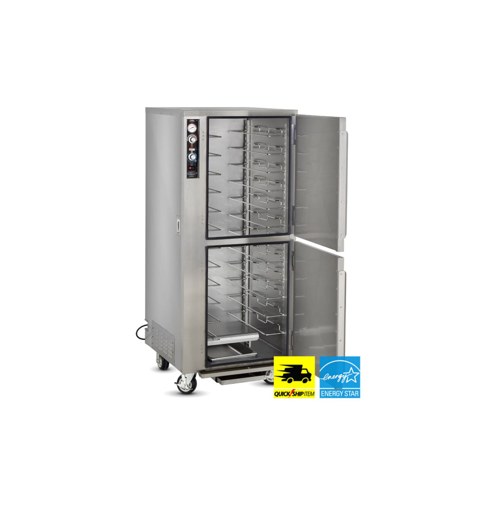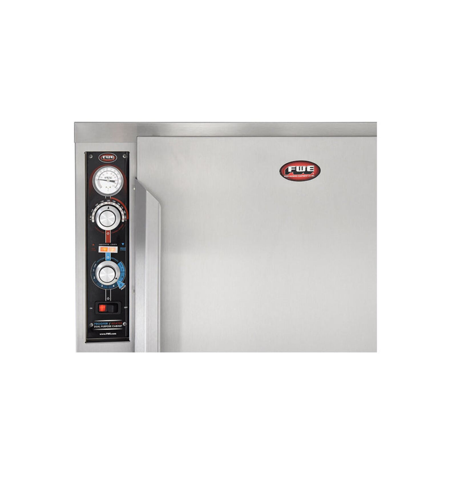 Dough Proofer and Heated Holding – Universal Cabinets Humidified Proofing System for Various Size Trays, Pans, and Gastro-Norm Two cabinets in one! Dual-purpose cabinets proof and heat – eliminating costly duplication of equipment. FWE’s proofer cabinets are built stronger and outperform all other brands! These units can double as full-time heated serving cabinets as well – saving money on duplicate equipment. Proofing and heating functions are independent of each other, with separate controls and heating elements.With up front eye level controls, these versatile cabinets are easy to use and equipped with a built-in proofing system to give you a faster pre-heat proofing time, and maintain a 95°F – 95% heat/humidity balance for uniform raised dough results. The built-in “Proofing” System conditions the cabinets’ interior holding environment by gently circulating hot, moist air that surrounds and protects your dough. With a separate control for moisture level, this cabinet can also be used as a heated holding cabinet during peak serving periods, keeping food fresh and hot for hours, with or without humidity. Universal Tray Slides Accommodate: (1) 18″ x 26″, (2) 12″ x 20″, (2) 14″ x 18″, (2) 12″ x 18″, (1) 20″ x 22″, (2) 10″ x 20″ trays/pans. Note: To hold GN Pans, order “Slides for GN Pans” under Optional Accessories.