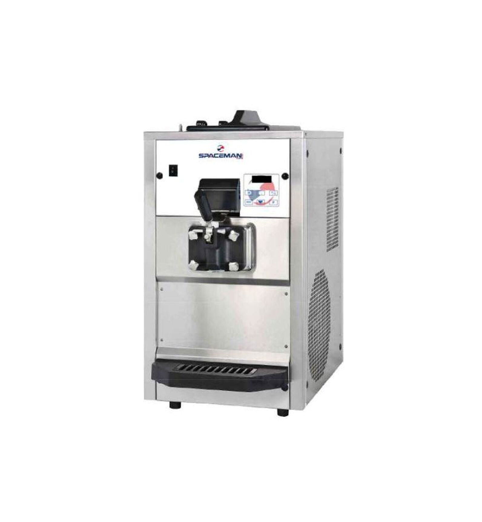 The Spaceman 6228AH is the premium soft serve option for mid to high capacity businesses. Good for ice cream, frozen yogurt, gelato or sorbet, this model fits conveniently on the counter top and has a user-friendly digital control board to adjust settings as needed. The hopper agitator will stir product throughout the day, saving operator time and ensuring an even cool in the hopper. Patented freezing technology on the 1.8qt cylinder means a super fast recovery time, producing up to 30 qts/hr, or 240 small servings every hour.