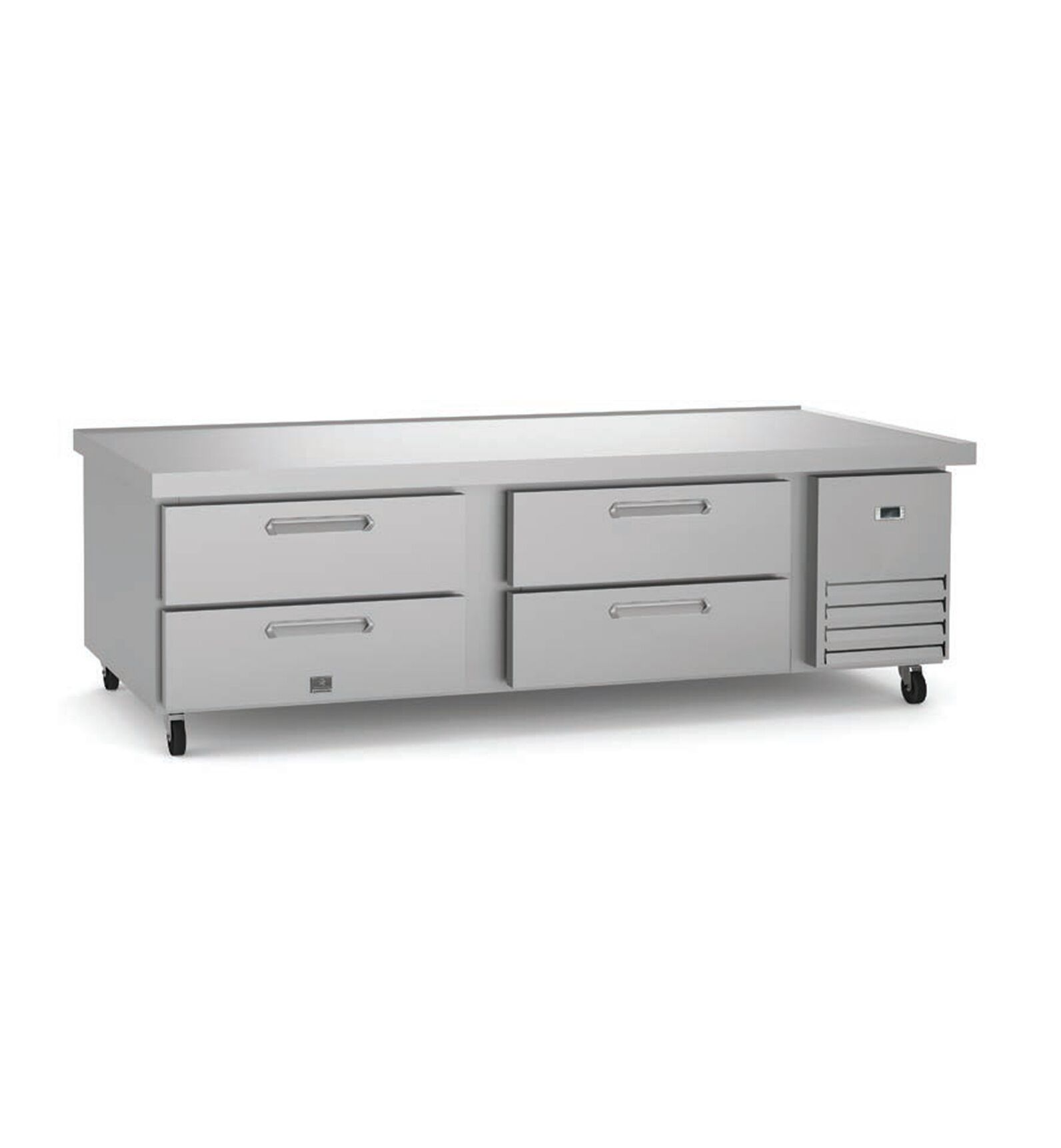 72″ Refrigerated Chef Base External temperature display R290 refrigerant Cabinet and door insulated with high density polyurethane for low environmental impact Insulation of the top guaranteed thanks to the integrated ceramic fiber heat shield Recommended maximum temperature on worktop surface is 572F