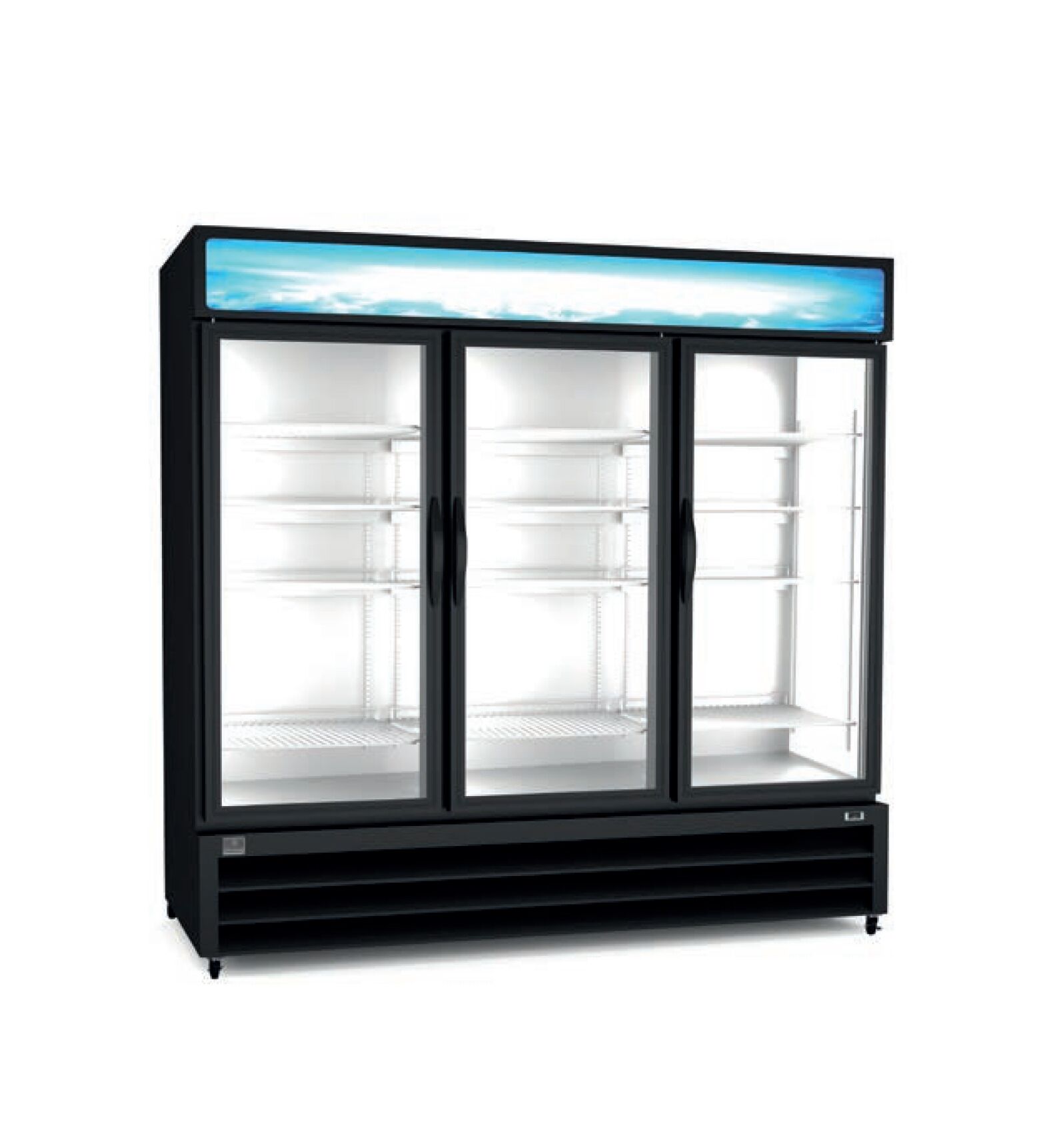 72 Cu. Ft. Glass Door Merchandiser 3 Glass Doors Black R290 refrigerant