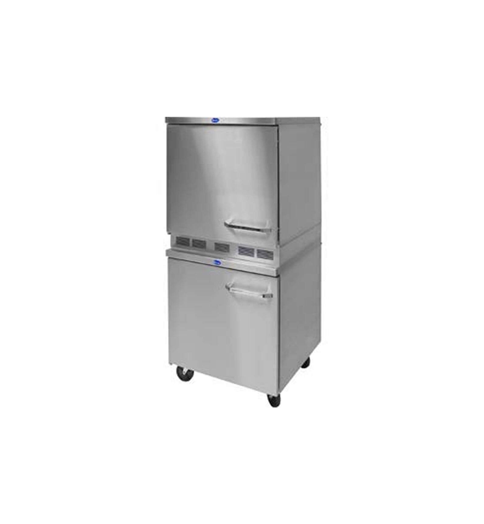Make the most out of valuable foor space by choosing one of the dual-temperature upright models. These dual-temps come in standard models available with the location of the refrigerator/freezer on top or bottom. This design offers tremendous menu fexibility by allowing dual temperature storage in a compact size. The small footprint combined with a lower height than traditional uprights allows it to be positioned on the line or able to utilize the top for storage. Standard models available in both right and left hinged versions. Units come standard on 6” casters and have dual 5-15P cord and plugs.