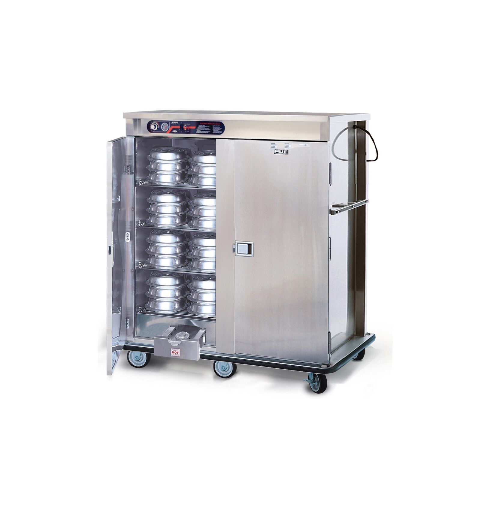 Dual-Heat System Banquet Cabinet XXL Heated holding cabinet sized to stack and nest covered plates up to 13.25″ diameter (to achieve maximum capacity). Operate these versatile banquet cabinets with either canned fuel or efficient forced air electrical heat to keep prepared meals hot and appetizing.Deep canned fuel receptacles transport cans securely and canned fuel drawers are secured by cabinet doors. Thermometer displays cabinet temperature at all times to assure food safety. Adjustable door vents regulate canned fuel temperature or moisture levels.