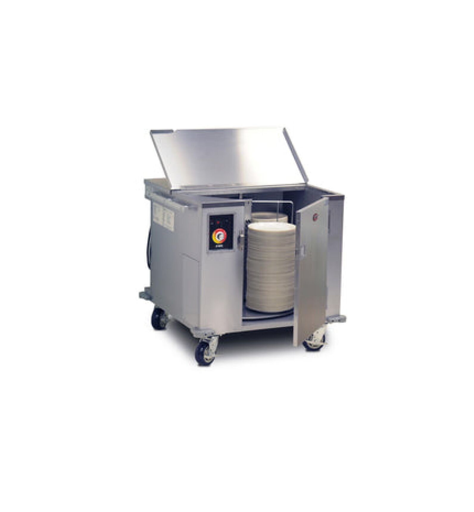 Insulated Heated Dish Cabinet Up to 12″ plates can be stored, heated, and held in this insulated and temperature controlled dish dolly. Preheat prior to dish-up. Adjustable and removable wire rods create four compartment segments that help separate and protect plates while in storage.Rotating stainless steel dish base eases loading and unloading of plates. The flip-back cover design allows the front door to be opened even when the top is closed. Adjustable up-front full range thermostat 100°F – 200°F (38°C – 93°C).