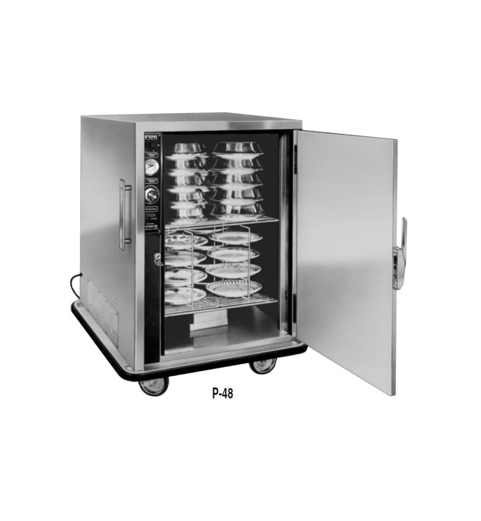 Humi-Temp Mobile Banquet Cabinet Single centralized cabinet door design helps prevent heat loss during frequent loading and unloading. Heated holding cabinet sized to stack and nest covered plates up to 11″ diameter (to achieve maximum capacity). Humi-Temp heat system preconditions the cabinet with low humidity.Heat is distributed evenly throughout the cabinet to keep pre-plated meals hot, fresh and flavorful for hours. Thermometer displays cabinet temperature at all times to assure food safety.