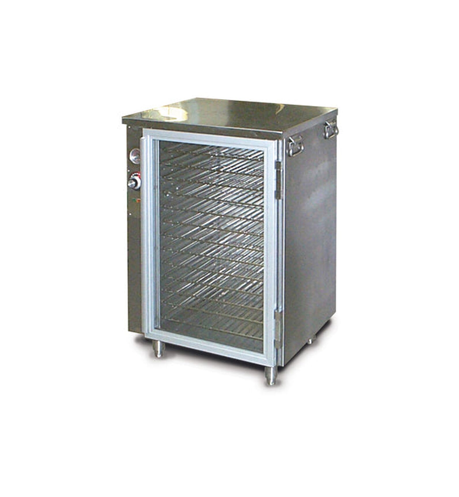 Serve appetizing food presentations from these units that help you produce consistent and better tasting foods. Available with a See-thru or insulated Stainless Steel Door. Perfect for in-house bakery or pizza programs this compact holding cabinet holds thirteen open or boxed 16″ Pizzas on shelves that allow FWE’s natural convection heat system to radiate throughout the cabinet. Used from hotels to food courts, hors d’oeuvres to bakery items, these stainless steel cabinets are easily wiped clean.