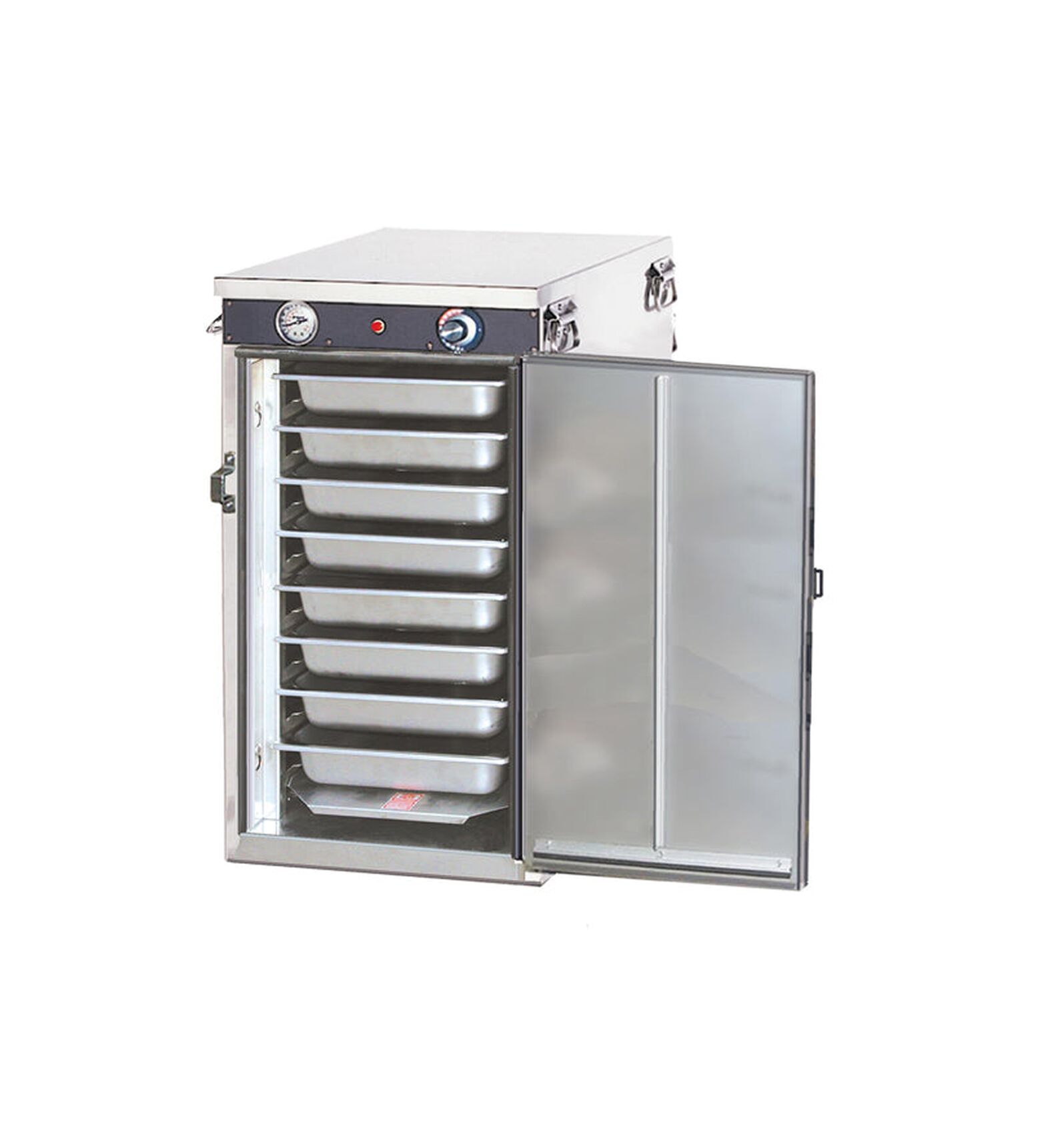 Handy Line Compartments Transport, Stacking, or Built-In Compartments (No Caster Model) For 12″ x 20″ and Gastro-Norm 1/1 Bulk Food Pans There’s no limit to the versatility of these handy stackable heated compartments. Mix and match sizes allow you to stack them to suit your capacities. Simple and dependable heat system holds bulk foods “kitchen-fresh” for hours. These compact units are durable and convenient for transport.Thermometer displays compartment temperature at all times to assure food safety. Pan Server Accommodates: (1) 12″ x 20″, (1) Gastro-Norm 1/1 pans. Combinations of deep and shallow pans may be used with varying capacities. The front edges are relieved for easy loading. Pair of racks are removable for easy cleaning.