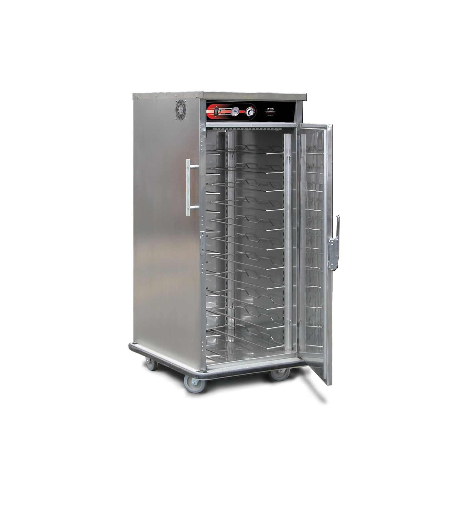 Built-In Top Mount Heat System Top design heat system provides an open bottom base and slim cabinet profile. Heat is gently circulated throughout the cabinet to keep bulk foods hot, fresh and flavorful for hours.Thermometer displays cabinet temperature at all times to assure food safety. Tray Slides Accommodate: (1) 18″ x 26″, (1) 12″ x 20″, (2) 14″ x 18″, (1) Gastro-Norm 1/1 trays/pans. Eleven (11) Pairs of Tray Slides provided. Tray slides are adjustable