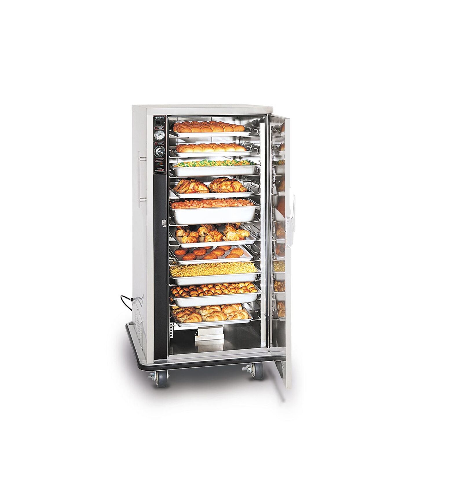 Humi-Temp Heat System Humi-Temp heat system preconditions the cabinet with low humidity. Heat is distributed evenly throughout the cabinet to keep bulk foods hot, fresh and flavorful for hours. Thermometer displays cabinet temperature at all times to assure food safety. Universal Heated Holding: Sized to hold a variety of trays and pans. The most versatile heated bulk food cabinet. Tray slides are adjustable to make any combination of these trays and pans possible at the same time! Ten (10) Pairs of Tray Slides provided. Universal Tray Slides Accommodate: (1) 18″ x 26″, (2) 12″ x 20″, (2) 14″ x 18″, (2) 12″ x 18″, (1) 20″ x 22″, (2) 10″ x 20″ trays/pans. Note: To hold GN Pans, order “Slides for GN Pans” under Optional Accessories.