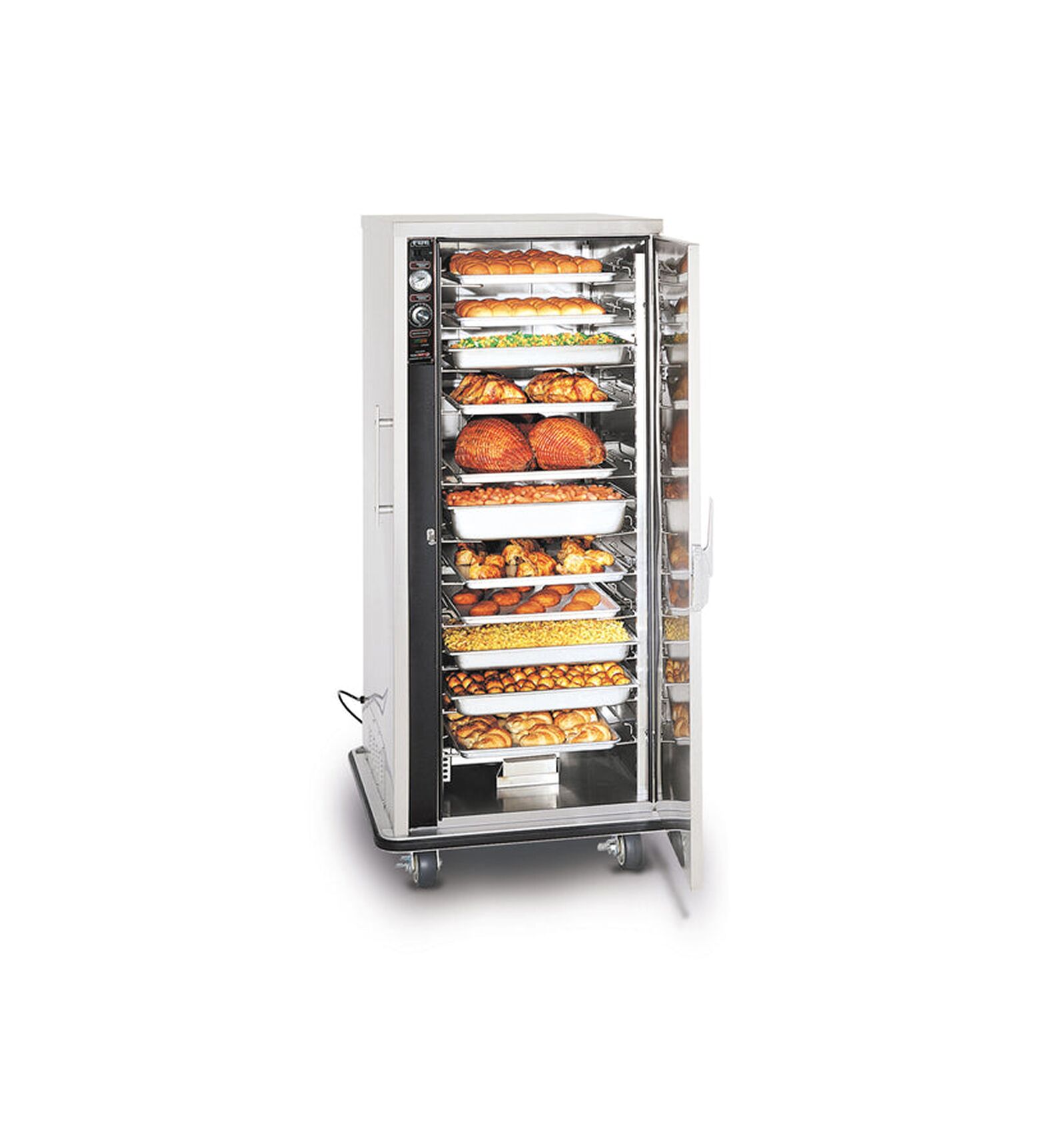 Humi-Temp Heat System Humi-Temp heat system preconditions the cabinet with low humidity. Heat is distributed evenly throughout the cabinet to keep bulk foods hot, fresh and flavorful for hours. Thermometer displays cabinet temperature at all times to assure food safety. Universal Heated Holding: Sized to hold a variety of trays and pans. The most versatile heated bulk food cabinet. Tray slides are adjustable to make any combination of these trays and pans possible at the same time! Twelve (12) Pairs of Tray Slides provided. Universal Tray Slides Accommodate: (1) 18″ x 26″, (2) 12″ x 20″, (2) 14″ x 18″, (2) 12″ x 18″, (1) 20″ x 22″, (2) 10″ x 20″ trays/pans. Note: To hold GN Pans, order “Slides for GN Pans” under Optional Accessories.