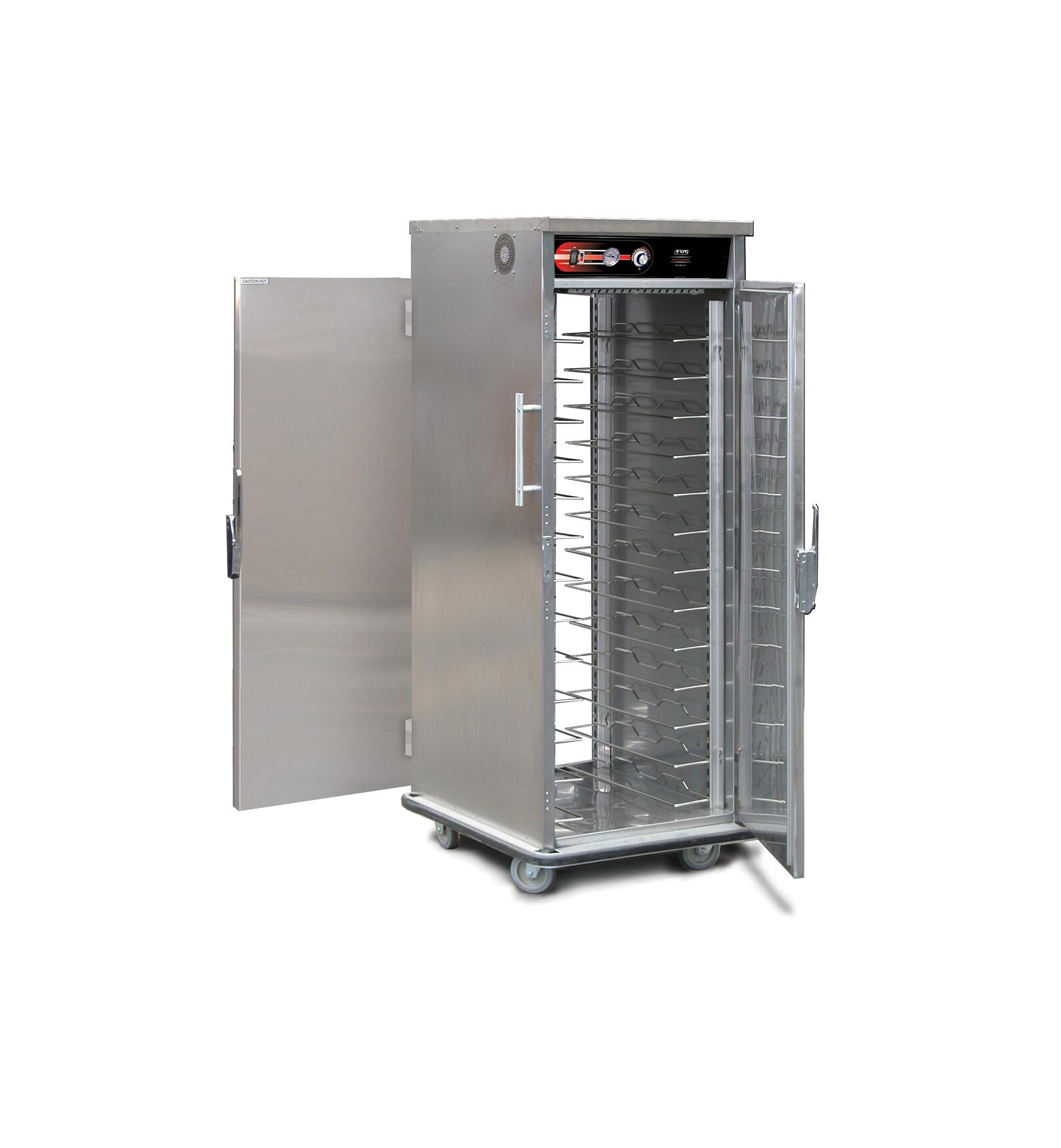 Built-In Top Mount Heat System Pass-thru Model. Top design heat system provides an open bottom base and slim cabinet profile. Heat is gently circulated throughout the cabinet to keep bulk foods hot, fresh and flavorful for hours. Thermometer displays cabinet temperature at all times to assure food safety. Universal Tray Slides Accommodate: (1) 18″ x 26″, (2) 12″ x 20″, (2) 14″ x 18″, (2) 12″ x 18″, (1) 20″ x 22″, (2) 10″ x 20″, (1) GN 2/1, (2) GN 1/1 trays/pans. Thirteen (13) Pairs of Tray Slides provided. Tray slides are adjustable.