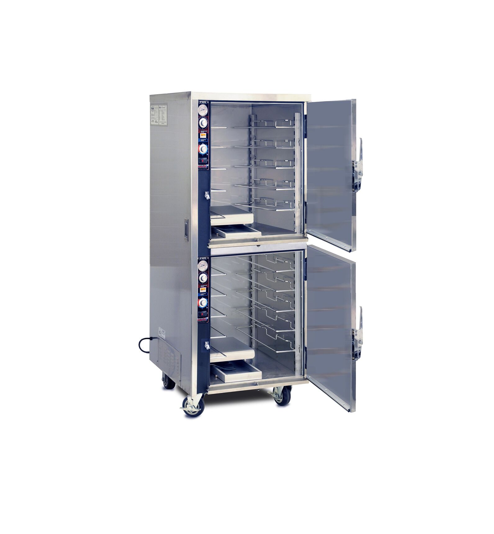 Split Cavity Heated Holding Features two (2) individual compartments each with separate controls. Perfect for holding menu items with different moisture levels in one convenient unit. Moisture-Temp Heat System Moisture-Temp Heat System features separate “air moisture” and “air temperature” controls. Moisture-Temp Cabinets are designed to hold all your moisture sensitive foods longer and safer. Universal Tray Slides Accommodate: (1) 18″ x 26″, (2) 12″ x 20″, (2) 14″ x 18″, (2) 12″ x 18″, (1) 20″ x 22″, (2) 10″ x 20″ trays/pans. Note: To hold GN Pans, order “Slides for GN Pans” under Optional Accessories. Five ( 5) Pairs of Tray Slides provided in each compartment. Ten (10) Pairs of Tray Slides total
