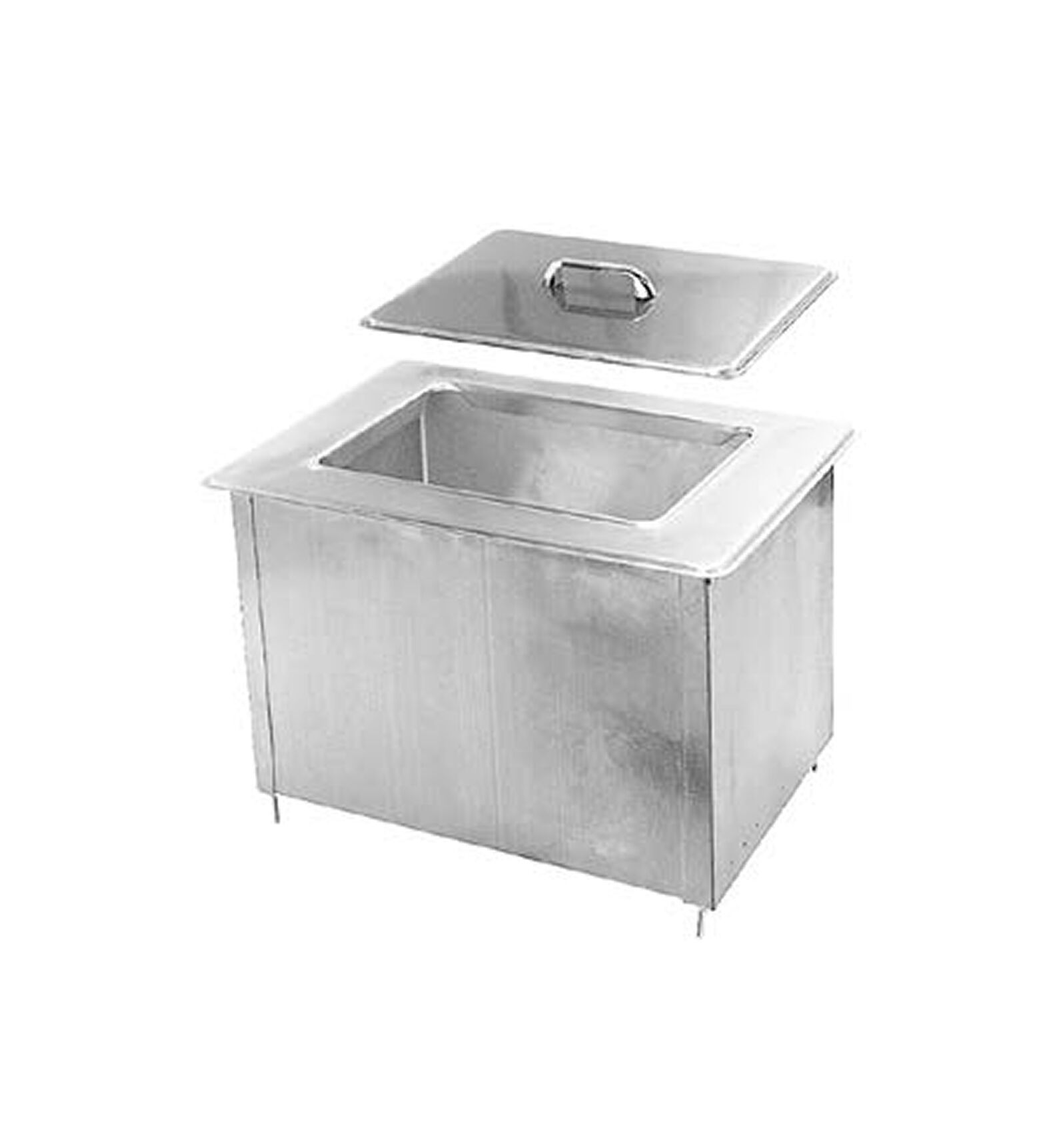 Ice station with stainless steel top and interior. Equipped with 1” ice bin drain. Removable stainless steel cover provided.