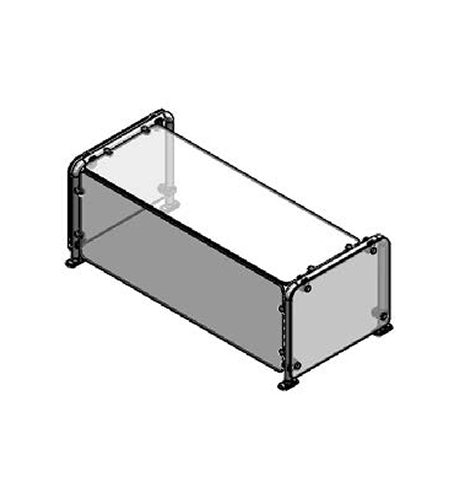 Designer series bent-corner breath guard: Single-tier, Single-sided, Non-adjustable front. Designed for full-service